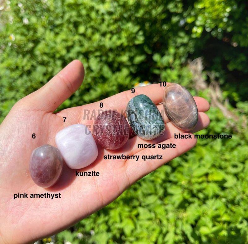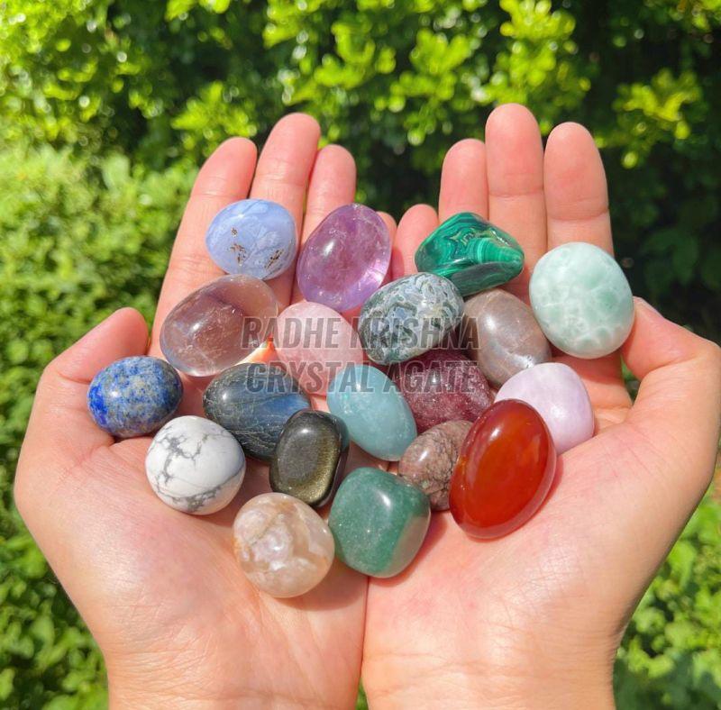 Agate tumbled stones are polished, smooth stones made from agate, a type of chalcedony quartz known for its banding patterns and variety of colors. These stones are popular for both decorative and metaphysical purposes, valued for their aesthetic appeal and believed healing properties.